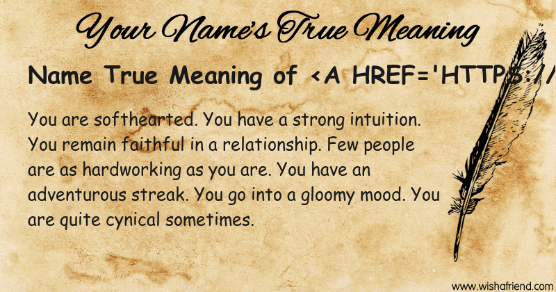 Get to know yourself better with Name True Meaning and share it with everyone on Facebook, Twitter, Pinterest, Tumblr, Whatsapp etc.
