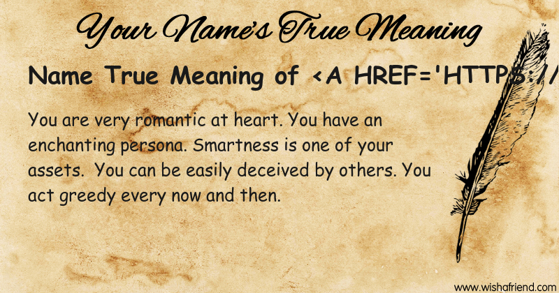 Get to know yourself better with Name True Meaning and share it with everyone on Facebook, Twitter, Pinterest, Tumblr, Whatsapp etc.