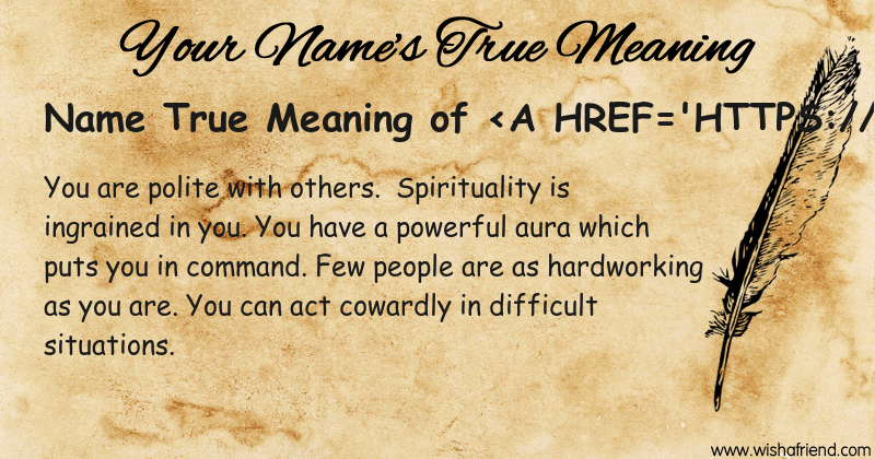 Get to know yourself better with Name True Meaning and share it with everyone on Facebook, Twitter, Pinterest, Tumblr, Whatsapp etc.