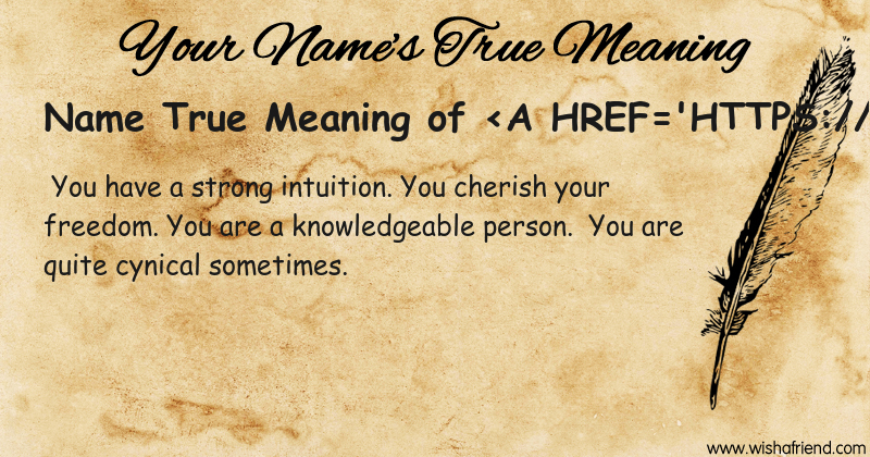Get to know yourself better with Name True Meaning and share it with everyone on Facebook, Twitter, Pinterest, Tumblr, Whatsapp etc.