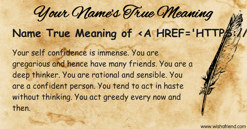 Get to know yourself better with Name True Meaning and share it with everyone on Facebook, Twitter, Pinterest, Tumblr, Whatsapp etc.