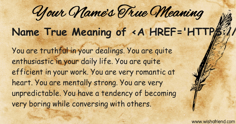 Get to know yourself better with Name True Meaning and share it with everyone on Facebook, Twitter, Pinterest, Tumblr, Whatsapp etc.