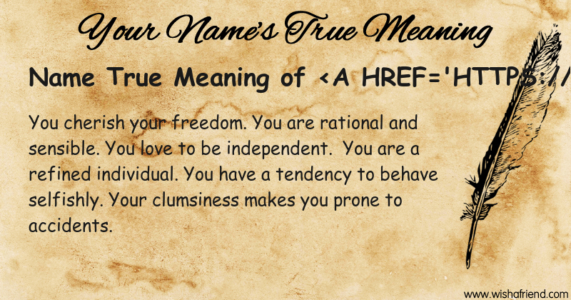 Get to know yourself better with Name True Meaning and share it with everyone on Facebook, Twitter, Pinterest, Tumblr, Whatsapp etc.