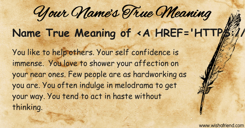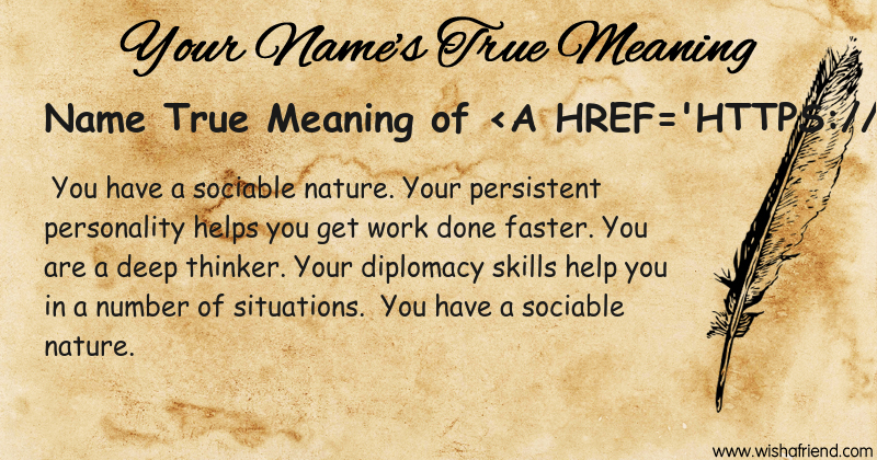 Get to know yourself better with Name True Meaning and share it with everyone on Facebook, Twitter, Pinterest, Tumblr, Whatsapp etc.