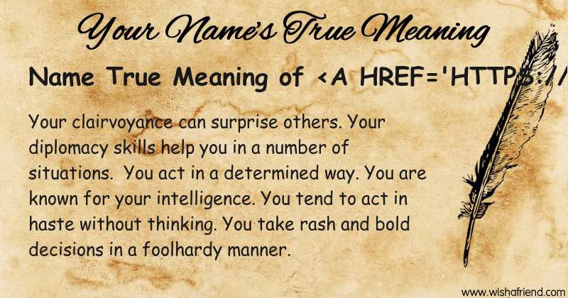 Get to know yourself better with Name True Meaning and share it with everyone on Facebook, Twitter, Pinterest, Tumblr, Whatsapp etc.