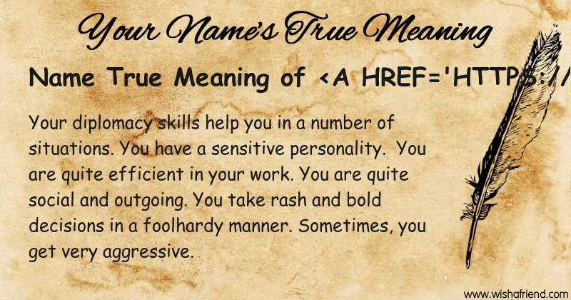 Get to know yourself better with Name True Meaning and share it with everyone on Facebook, Twitter, Pinterest, Tumblr, Whatsapp etc.