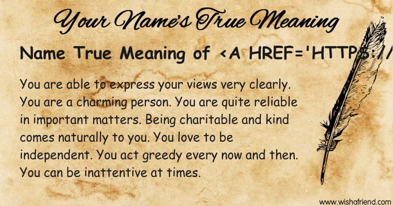 Get to know yourself better with Name True Meaning and share it with everyone on Facebook, Twitter, Pinterest, Tumblr, Whatsapp etc.