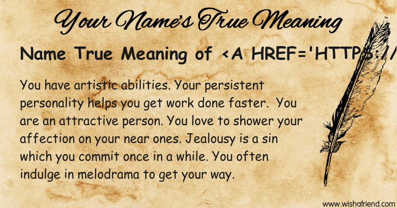 Get to know yourself better with Name True Meaning and share it with everyone on Facebook, Twitter, Pinterest, Tumblr, Whatsapp etc.