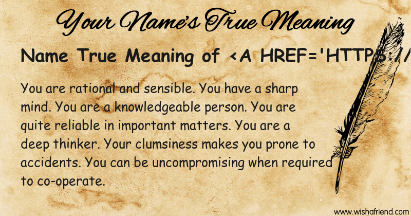 Get to know yourself better with Name True Meaning and share it with everyone on Facebook, Twitter, Pinterest, Tumblr, Whatsapp etc.