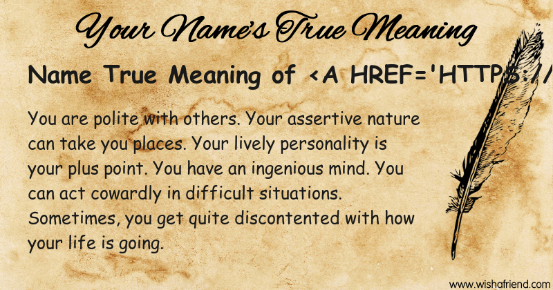 Get to know yourself better with Name True Meaning and share it with everyone on Facebook, Twitter, Pinterest, Tumblr, Whatsapp etc.