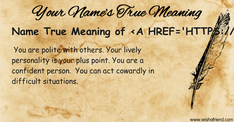 Get to know yourself better with Name True Meaning and share it with everyone on Facebook, Twitter, Pinterest, Tumblr, Whatsapp etc.