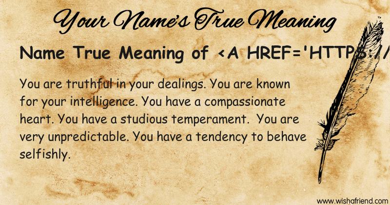 Get to know yourself better with Name True Meaning and share it with everyone on Facebook, Twitter, Pinterest, Tumblr, Whatsapp etc.