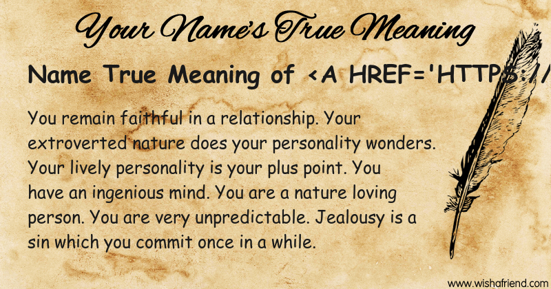 Get to know yourself better with Name True Meaning and share it with everyone on Facebook, Twitter, Pinterest, Tumblr, Whatsapp etc.