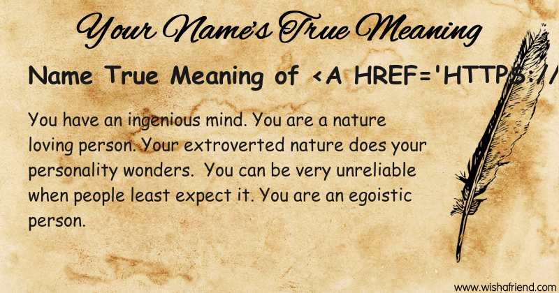 Get to know yourself better with Name True Meaning and share it with everyone on Facebook, Twitter, Pinterest, Tumblr, Whatsapp etc.