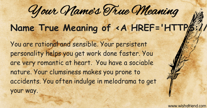 Get to know yourself better with Name True Meaning and share it with everyone on Facebook, Twitter, Pinterest, Tumblr, Whatsapp etc.