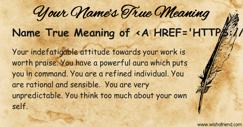 Get to know yourself better with Name True Meaning and share it with everyone on Facebook, Twitter, Pinterest, Tumblr, Whatsapp etc.