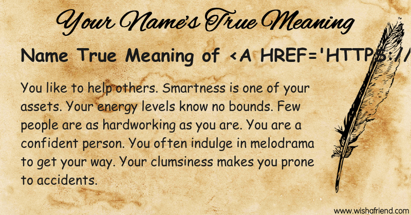 Get to know yourself better with Name True Meaning and share it with everyone on Facebook, Twitter, Pinterest, Tumblr, Whatsapp etc.