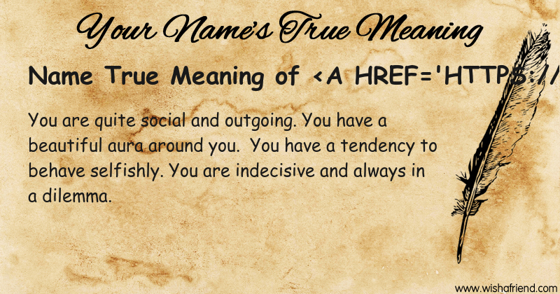 Get to know yourself better with Name True Meaning and share it with everyone on Facebook, Twitter, Pinterest, Tumblr, Whatsapp etc.