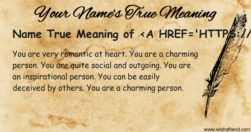 Get to know yourself better with Name True Meaning and share it with everyone on Facebook, Twitter, Pinterest, Tumblr, Whatsapp etc.