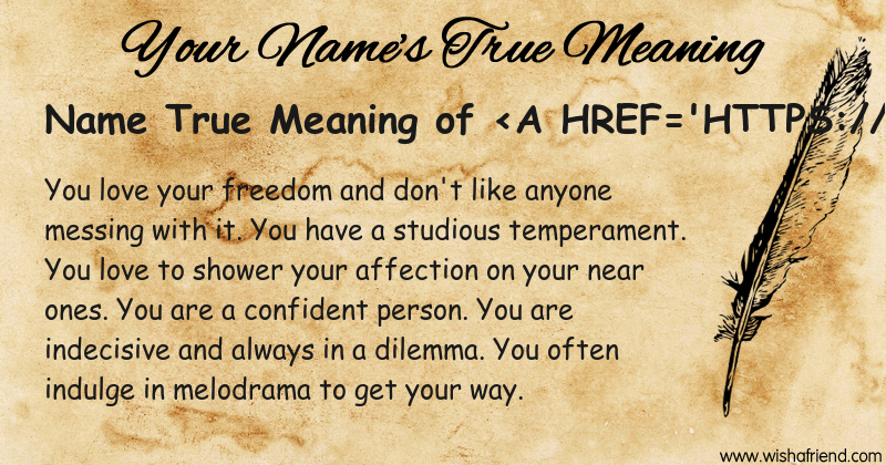Get to know yourself better with Name True Meaning and share it with everyone on Facebook, Twitter, Pinterest, Tumblr, Whatsapp etc.