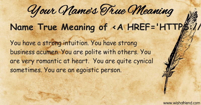 Get to know yourself better with Name True Meaning and share it with everyone on Facebook, Twitter, Pinterest, Tumblr, Whatsapp etc.