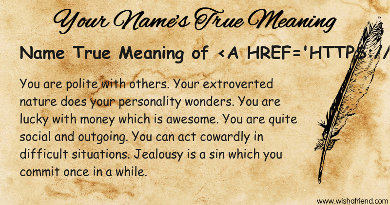 Get to know yourself better with Name True Meaning and share it with everyone on Facebook, Twitter, Pinterest, Tumblr, Whatsapp etc.