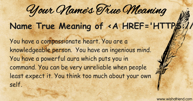 Get to know yourself better with Name True Meaning and share it with everyone on Facebook, Twitter, Pinterest, Tumblr, Whatsapp etc.