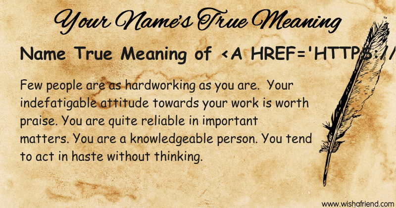 Get to know yourself better with Name True Meaning and share it with everyone on Facebook, Twitter, Pinterest, Tumblr, Whatsapp etc.