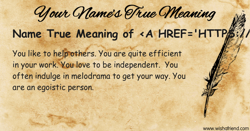 Get to know yourself better with Name True Meaning and share it with everyone on Facebook, Twitter, Pinterest, Tumblr, Whatsapp etc.