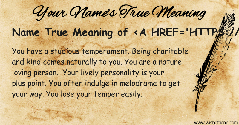 Get to know yourself better with Name True Meaning and share it with everyone on Facebook, Twitter, Pinterest, Tumblr, Whatsapp etc.
