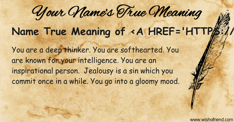 Get to know yourself better with Name True Meaning and share it with everyone on Facebook, Twitter, Pinterest, Tumblr, Whatsapp etc.