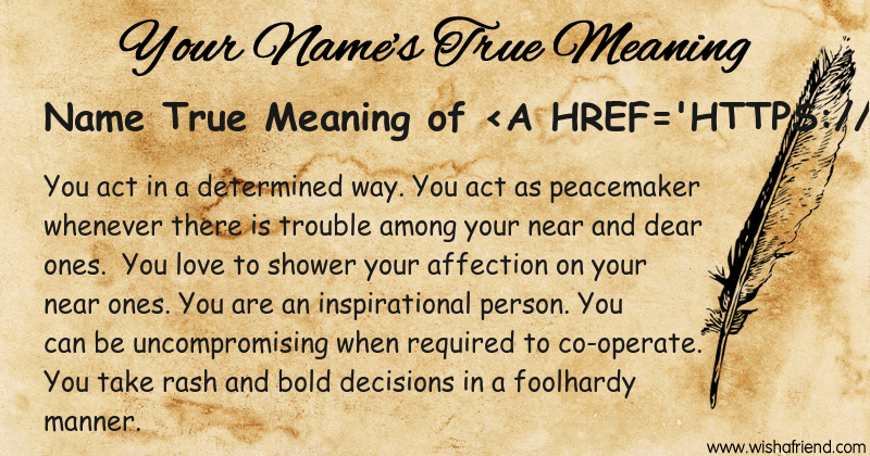 Get to know yourself better with Name True Meaning and share it with everyone on Facebook, Twitter, Pinterest, Tumblr, Whatsapp etc.