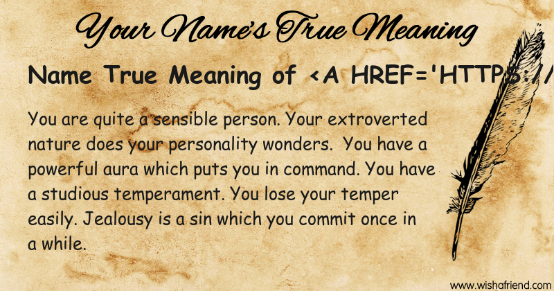 Get to know yourself better with Name True Meaning and share it with everyone on Facebook, Twitter, Pinterest, Tumblr, Whatsapp etc.