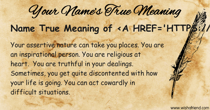 Get to know yourself better with Name True Meaning and share it with everyone on Facebook, Twitter, Pinterest, Tumblr, Whatsapp etc.