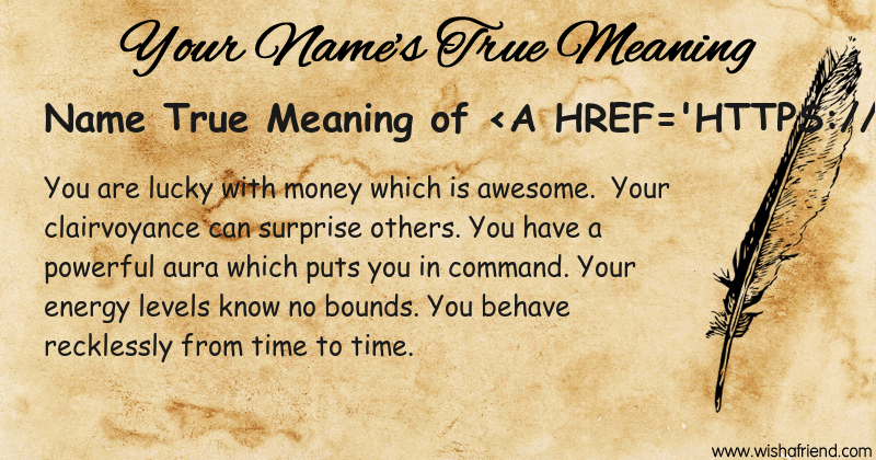 Get to know yourself better with Name True Meaning and share it with everyone on Facebook, Twitter, Pinterest, Tumblr, Whatsapp etc.