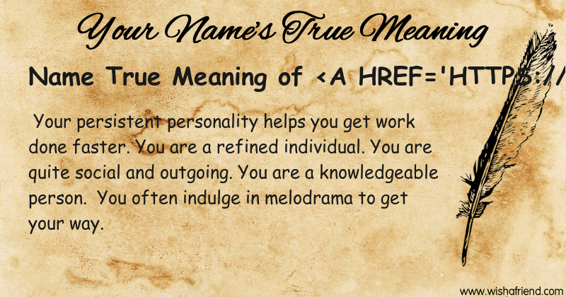 Get to know yourself better with Name True Meaning and share it with everyone on Facebook, Twitter, Pinterest, Tumblr, Whatsapp etc.