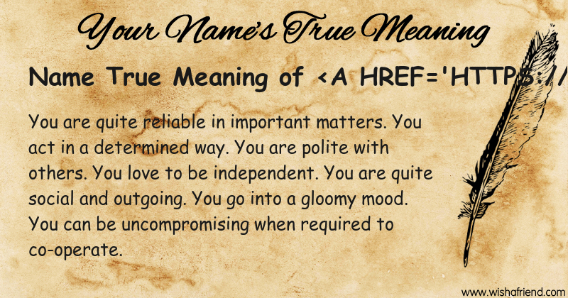 Get to know yourself better with Name True Meaning and share it with everyone on Facebook, Twitter, Pinterest, Tumblr, Whatsapp etc.
