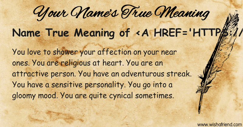 Get to know yourself better with Name True Meaning and share it with everyone on Facebook, Twitter, Pinterest, Tumblr, Whatsapp etc.