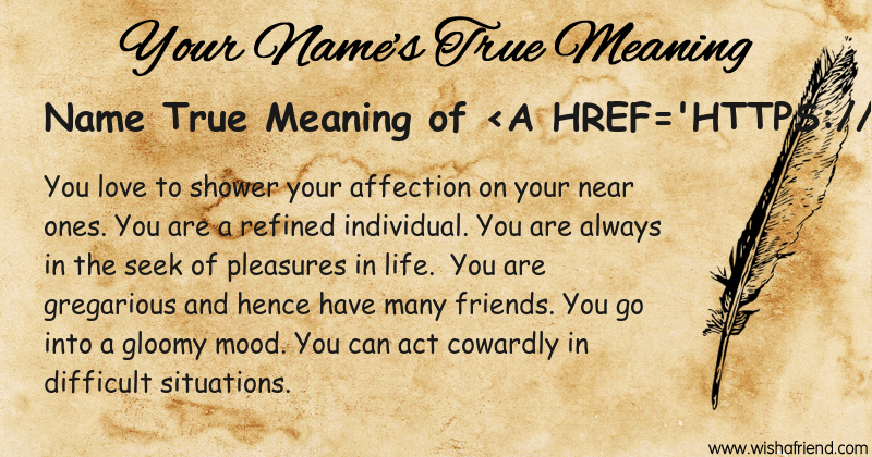 Get to know yourself better with Name True Meaning and share it with everyone on Facebook, Twitter, Pinterest, Tumblr, Whatsapp etc.