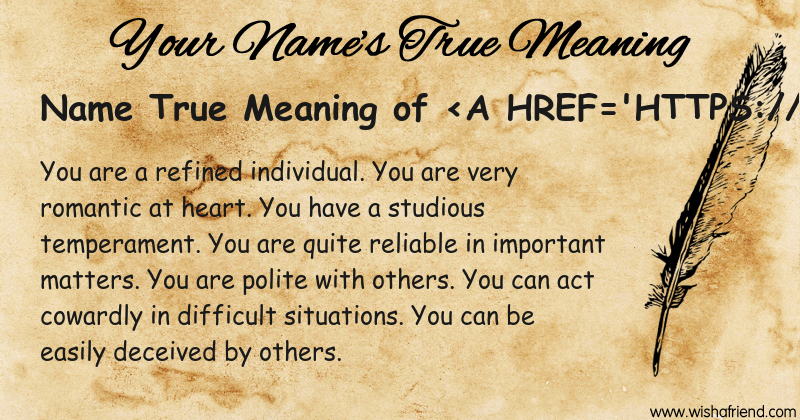 Get to know yourself better with Name True Meaning and share it with everyone on Facebook, Twitter, Pinterest, Tumblr, Whatsapp etc.