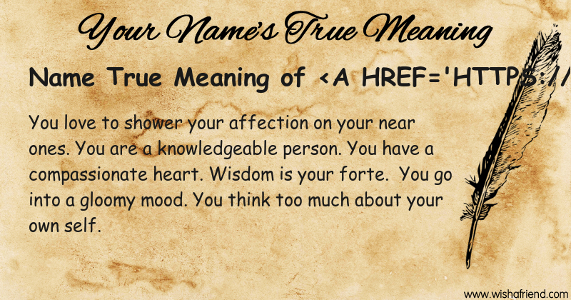 Get to know yourself better with Name True Meaning and share it with everyone on Facebook, Twitter, Pinterest, Tumblr, Whatsapp etc.