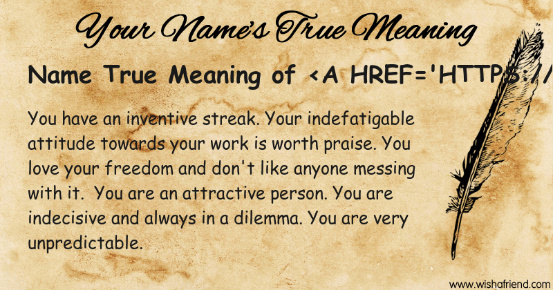 Get to know yourself better with Name True Meaning and share it with everyone on Facebook, Twitter, Pinterest, Tumblr, Whatsapp etc.