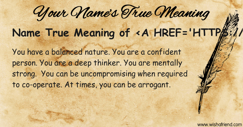 Get to know yourself better with Name True Meaning and share it with everyone on Facebook, Twitter, Pinterest, Tumblr, Whatsapp etc.