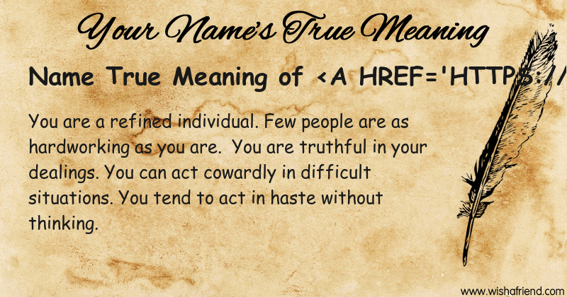 Get to know yourself better with Name True Meaning and share it with everyone on Facebook, Twitter, Pinterest, Tumblr, Whatsapp etc.
