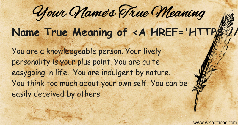 Get to know yourself better with Name True Meaning and share it with everyone on Facebook, Twitter, Pinterest, Tumblr, Whatsapp etc.