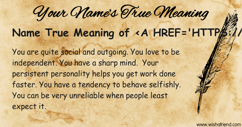 Get to know yourself better with Name True Meaning and share it with everyone on Facebook, Twitter, Pinterest, Tumblr, Whatsapp etc.