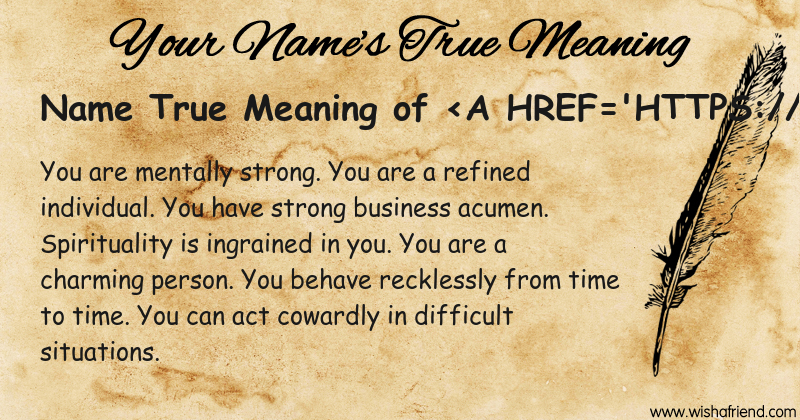 Get to know yourself better with Name True Meaning and share it with everyone on Facebook, Twitter, Pinterest, Tumblr, Whatsapp etc.