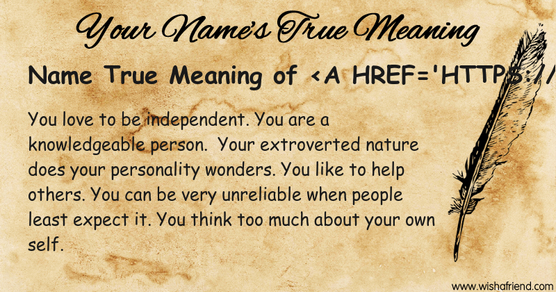 Get to know yourself better with Name True Meaning and share it with everyone on Facebook, Twitter, Pinterest, Tumblr, Whatsapp etc.