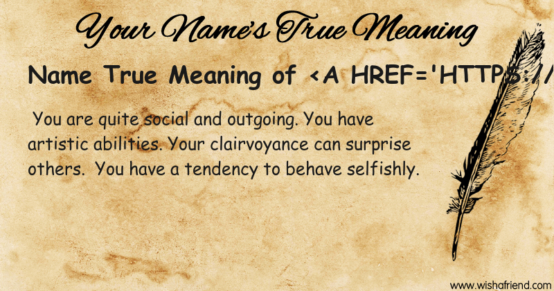 Get to know yourself better with Name True Meaning and share it with everyone on Facebook, Twitter, Pinterest, Tumblr, Whatsapp etc.