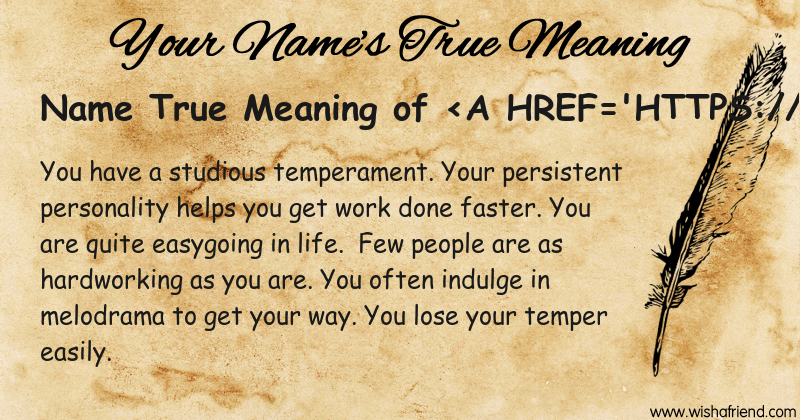 Get to know yourself better with Name True Meaning and share it with everyone on Facebook, Twitter, Pinterest, Tumblr, Whatsapp etc.